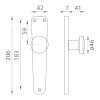 Dveřní pevná přímá koule na oválném štítu je vyrobená z hliníku a je povrchově upravená. Koule má průměr 46 mm a oválný štít má rozměry 42 mm x 206 mm.