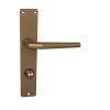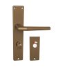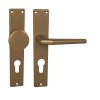 Štítová klika na interiérové dveře s hranatým štítem je vyrobena z hliníku a je povrchově upravena. Hranatý štít má rozměry 43 mm x 215 mm a klika neobsahuje vratný mechanismus.