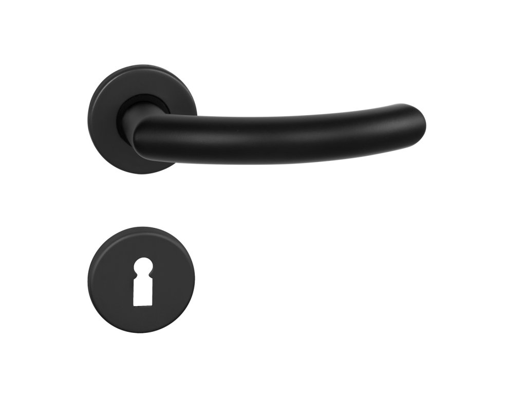 Rozetová klika na interiérové dveře s kulatou rozetou je vyrobená z hliníku a je povrchově upravená. Rozeta má průměr 50 mm a tloušťku 7 mm. Klika neobsahuje vratný mechanismus kliky – pružinu a mechanika kliky je uložená v plastovém pouzdře.