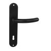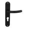 Štítová klika na interiérové dveře s oválným štítem je vyrobená z hliníku a je povrchově upravená. Oválný štít má rozměry 42 mm x 206 mm a klika neobsahuje vratný mechanismus.