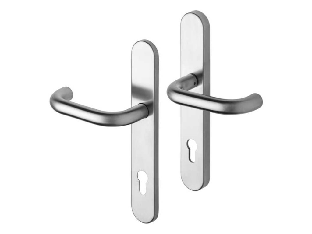 Univerzální bezpečnostní kování pro široký sortiment zadlabacích zámků s panikovou funkcí. Tvar kliky U- možné použít na únikových cestách dle EN179.
