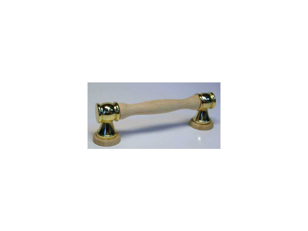 Kombinovaná pětidílná úchytka ze slitiny zinku a bukového dřeva, galvanicky pokovená, s dřevem surovým,lakovaným nebo mořeným, balená včetně šroubků pro uchycení.