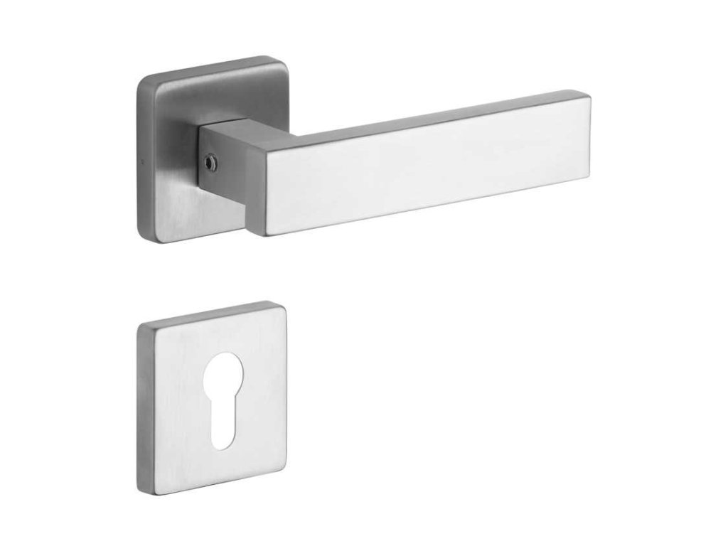 Rozetové kování na dveře se čtvercovými rozetami.
