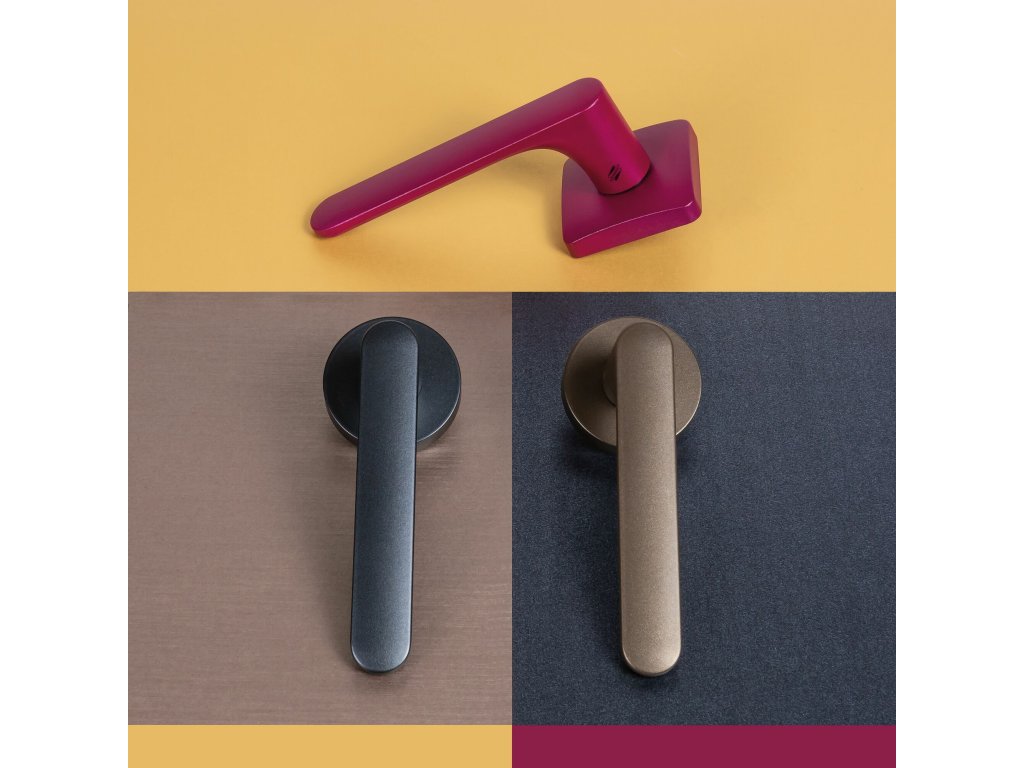Minimalistický design rozety dává prostor pro vyniknutí výrazné barvy samotné kliky.