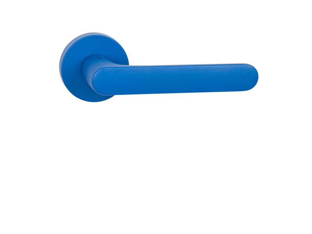 Barevná rozetová klika na interiérové dveře MOOD ONE s kulatou rozetou je vyrobena z materiálů vysoké kvality a je povrchově upravena.