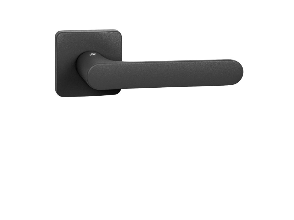 Barevná rozetová klika na interiérové dveře MOOD ONEQ s hranatou rozetou je vyrobena z materiálů vysoké kvality a je povrchově upravena.