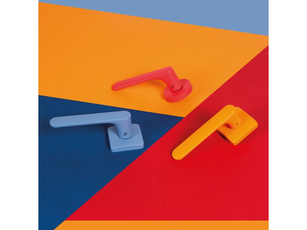 Minimalistický design rozety dává prostor pro vyniknutí výrazné barvy samotné kliky.