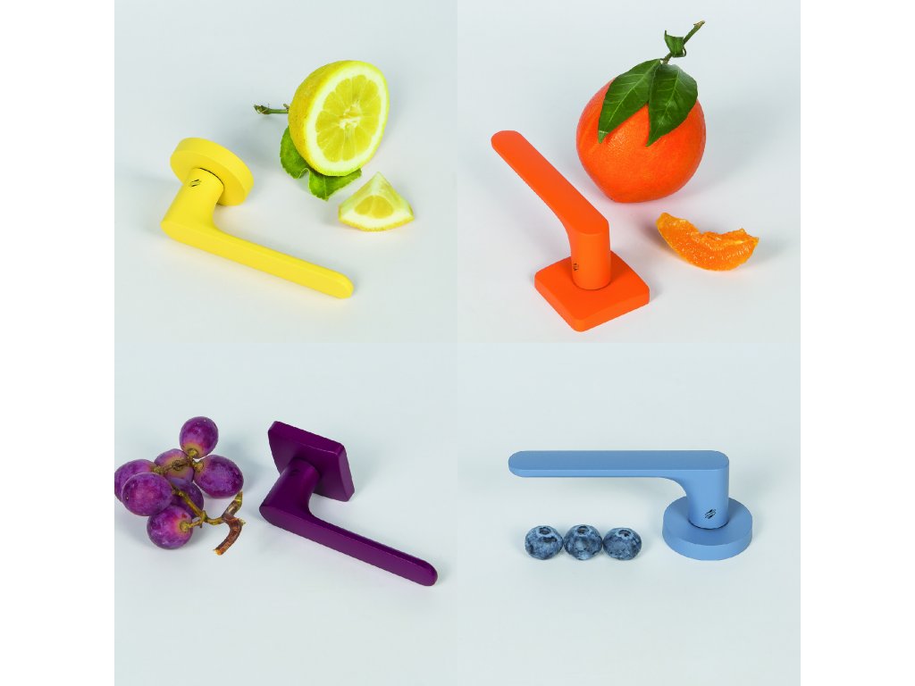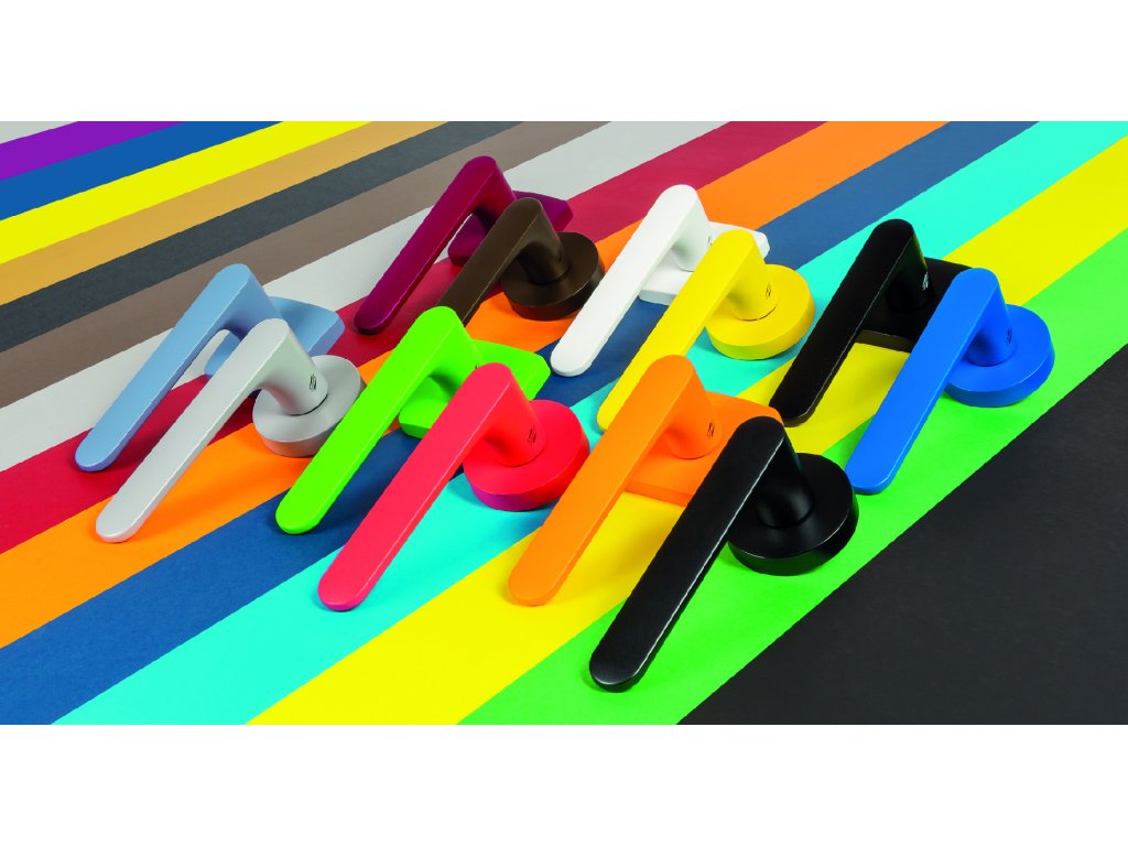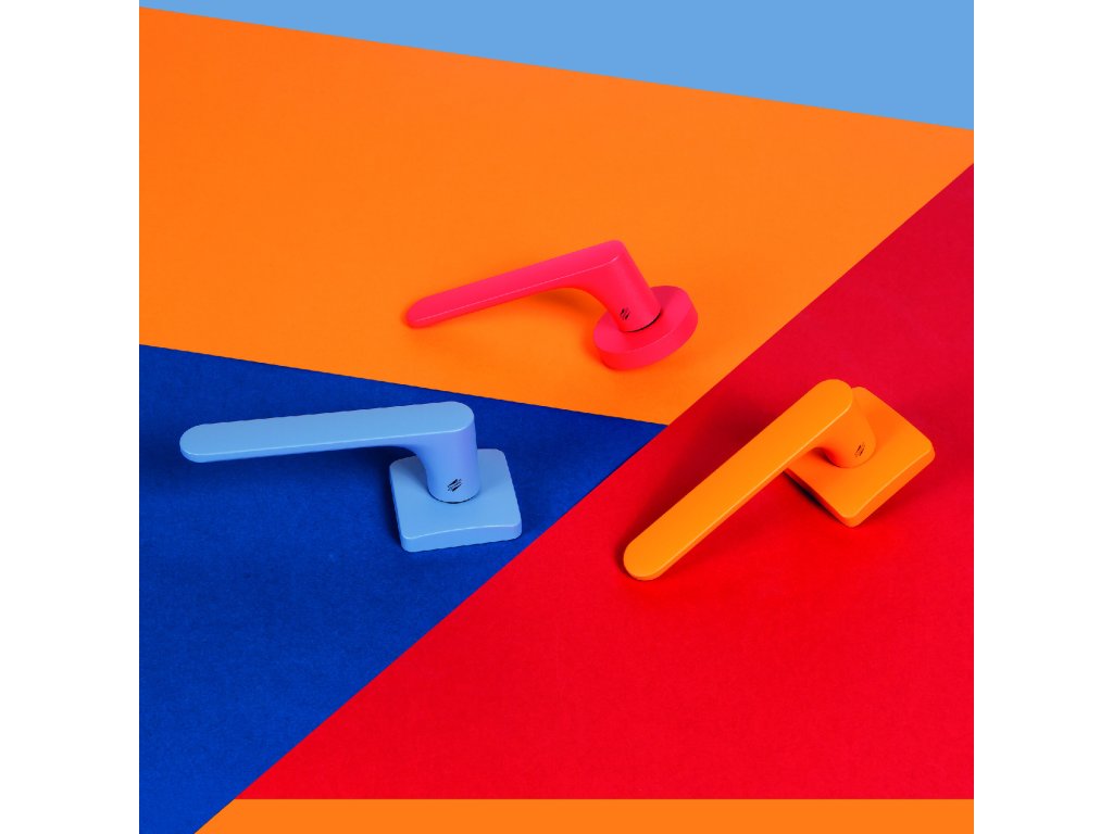 Minimalistický design rozety dává prostor pro vyniknutí výrazné barvy samotné kliky.