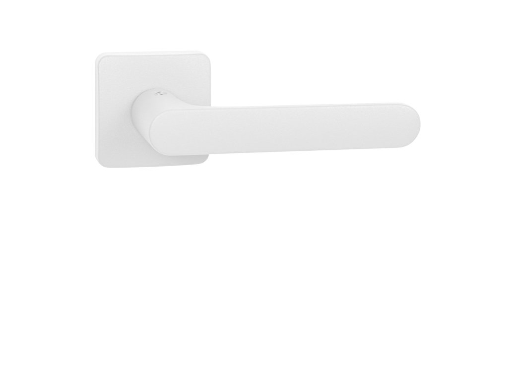 Barevná rozetová klika na interiérové dveře MOOD ONEQ s hranatou rozetou je vyrobena z materiálů vysoké kvality a je povrchově upravena.