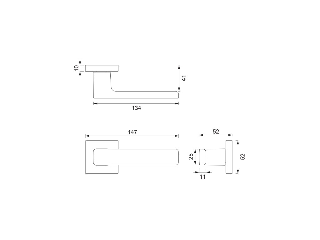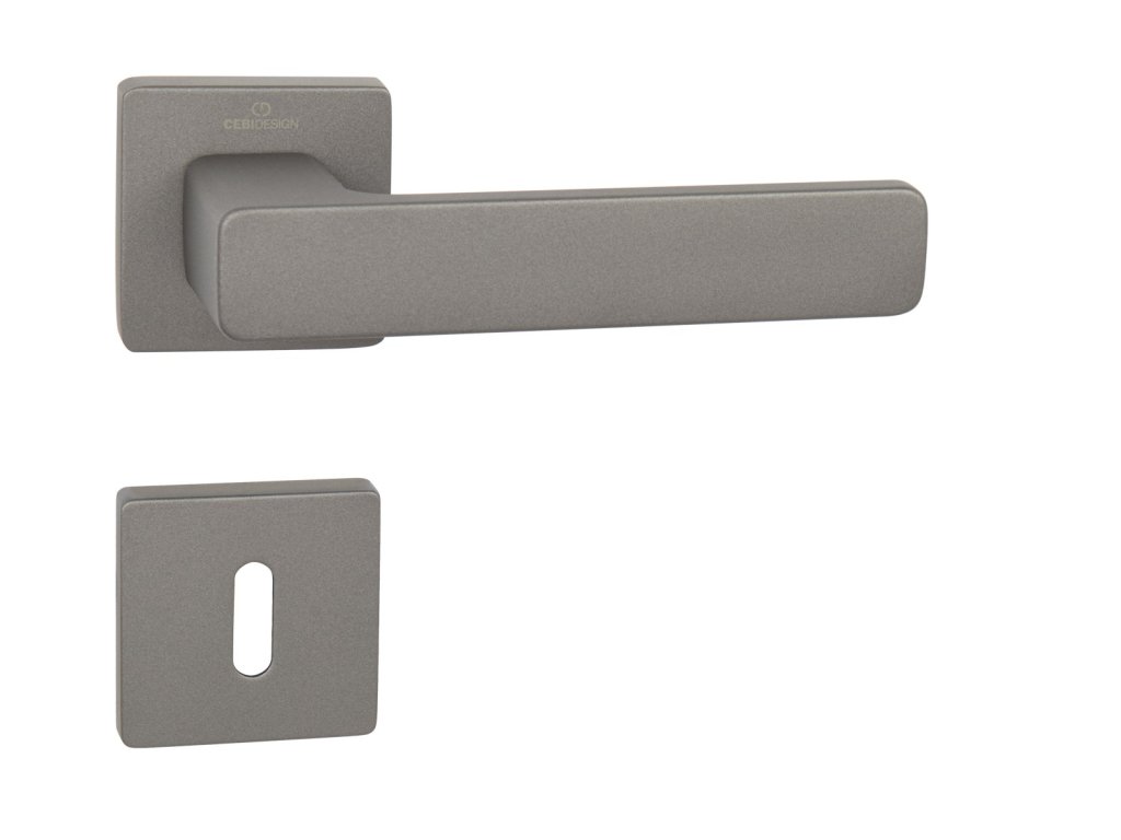 Rozetová klika FLAT na interiérové dveře s hranatou rozetou je vyrobená z kvalitního tvrzeného polyamidu. Rozeta má rozměr 52x52 mm a tloušťku jen 10 mm.