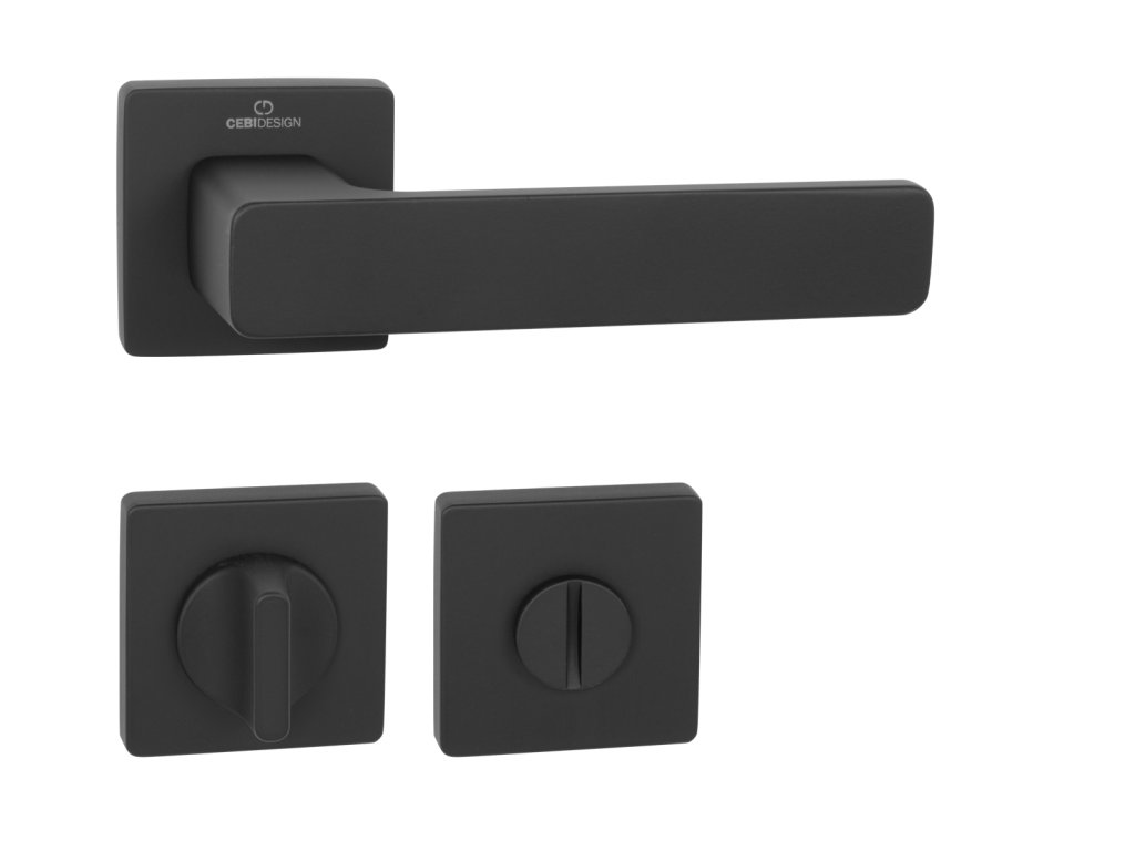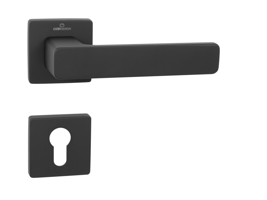 Rozetová klika FLAT na interiérové dveře s hranatou rozetou je vyrobená z kvalitního tvrzeného polyamidu. Rozeta má rozměr 52x52 mm a tloušťku jen 10 mm.