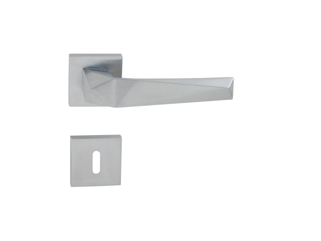 Rozetová klika na interiérové dveře s hranatou rozetou je vyrobena z materiálů vysoké kvality – mosaz / slitina zinku. Rozeta má rozměry 50 mm x 50 mm a standarní tloušťku 11 mm.