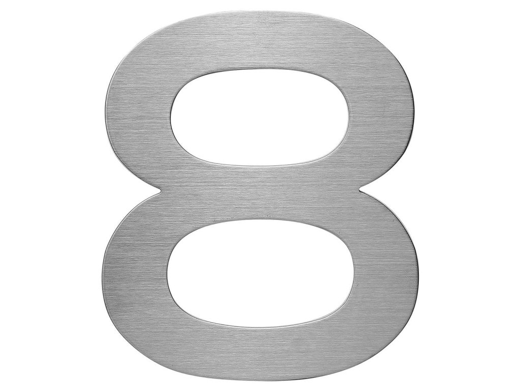 Nerezové číslo v plochém „2D“ provedení. Balení vč. oboustranné lepící pásky.