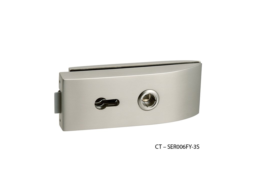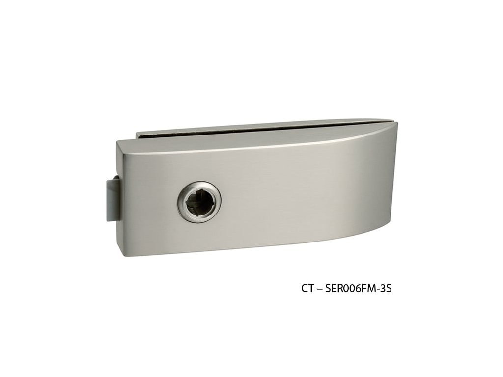 Dvojice otvorů do skleněného křídla pro zámek a protikus má průměr 48 mm a pro panty 18 mm. Tloušťka skla 8 - 10 mm.