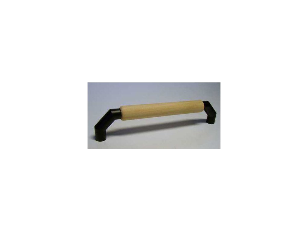 Kombinovaná třídílná úchytka ze slitiny zinku a bukového dřeva, komaxitovaná, s dřevem surovým,lakovaným nebo mořeným, balená včetně šroubků pro uchycení.