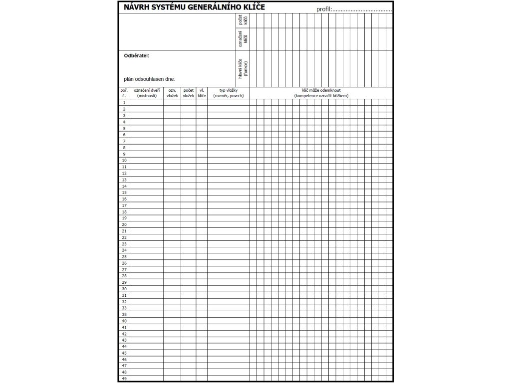 SYSTÉM GENERÁLNÍHO KLÍČE - UZAMYKACÍ SYSTÉM