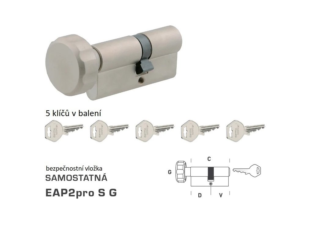 EAP2pro S G je samostatná bezpečnostní vložka s možností sjednocení více vložek na společný klíč.