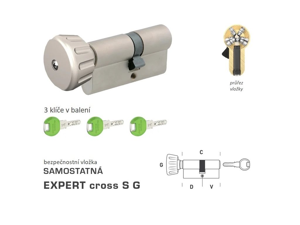 EXPERT cross S G je samostatná bezpečnostní vložka s možností sjednocení více vložek na společný klíč.