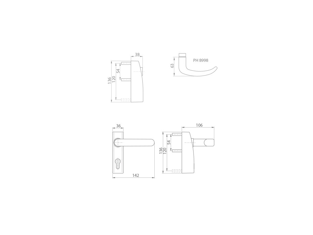 • se čtyřhranem kliky, se dvěma upevňovacími šrouby s válcovou hlavou