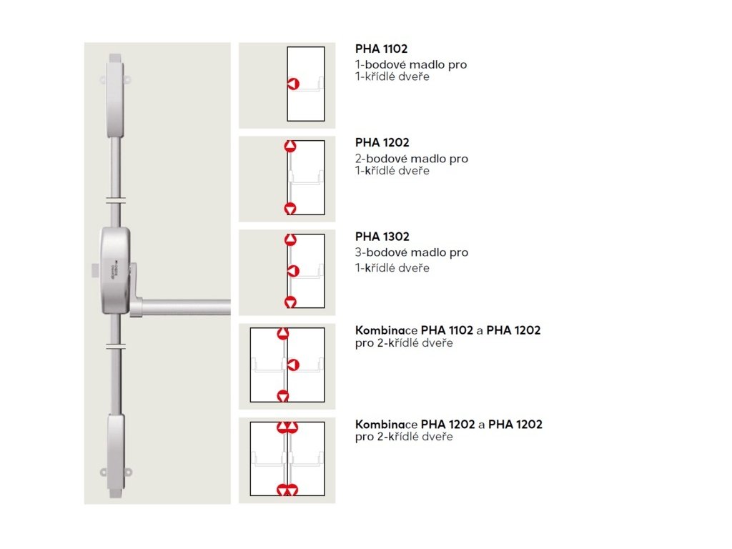 1-bodové panikové kování pro 1-křídlé dveře na únikových cestách.