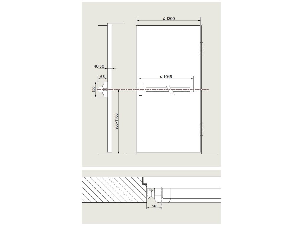 1-bodové panikové kování pro 1-křídlé dveře na únikových cestách.