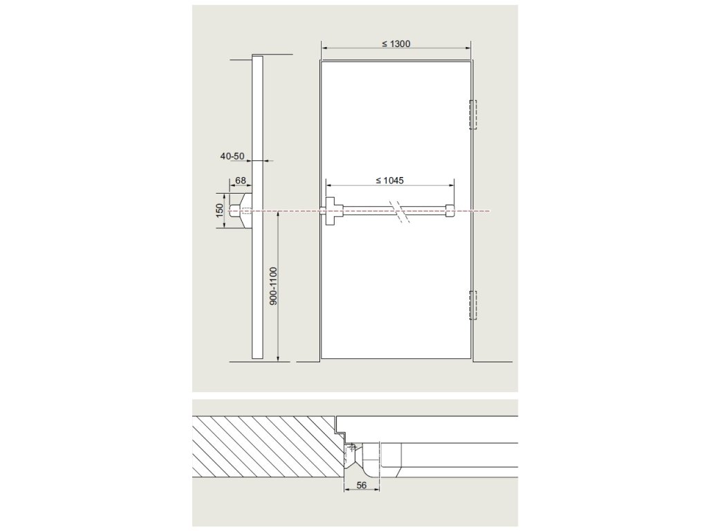 1-bodové panikové kování pro 1-křídlé dveře na únikových cestách.