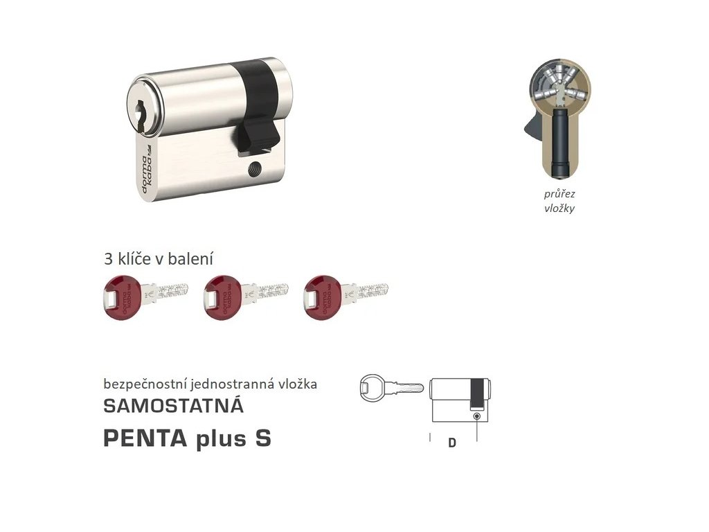 PENTA plus S je samostatná bezpečnostní půlvložka s možností sjednocení více vložek na společný klíč.