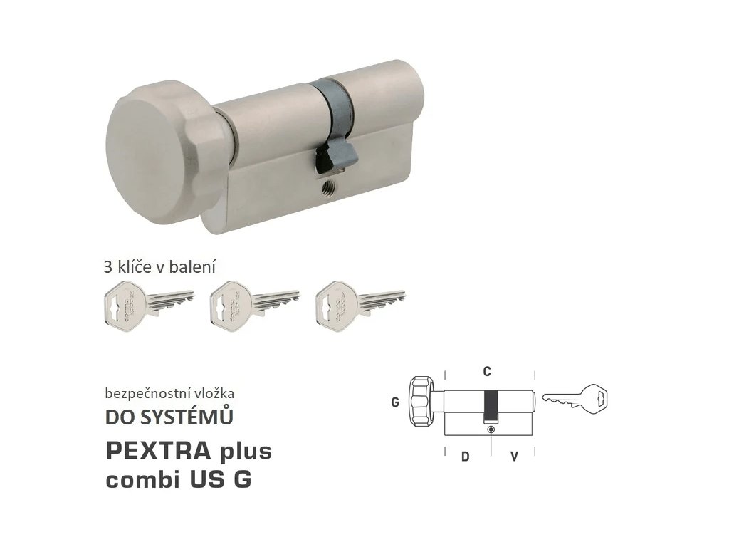 Vložka PEXTRA plus combi US G je určená pro uzamykací systémy (US).