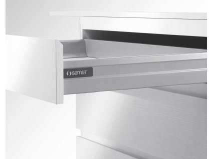 Systémy zásuvek: Samet poskytuje boční i spodní montážní výsuvy, stejně jako kompletní zásuvkové boxy, jako jsou FlowBox, AlphaBox a SmartBox, které kombinují funkčnost s estetickým designem.