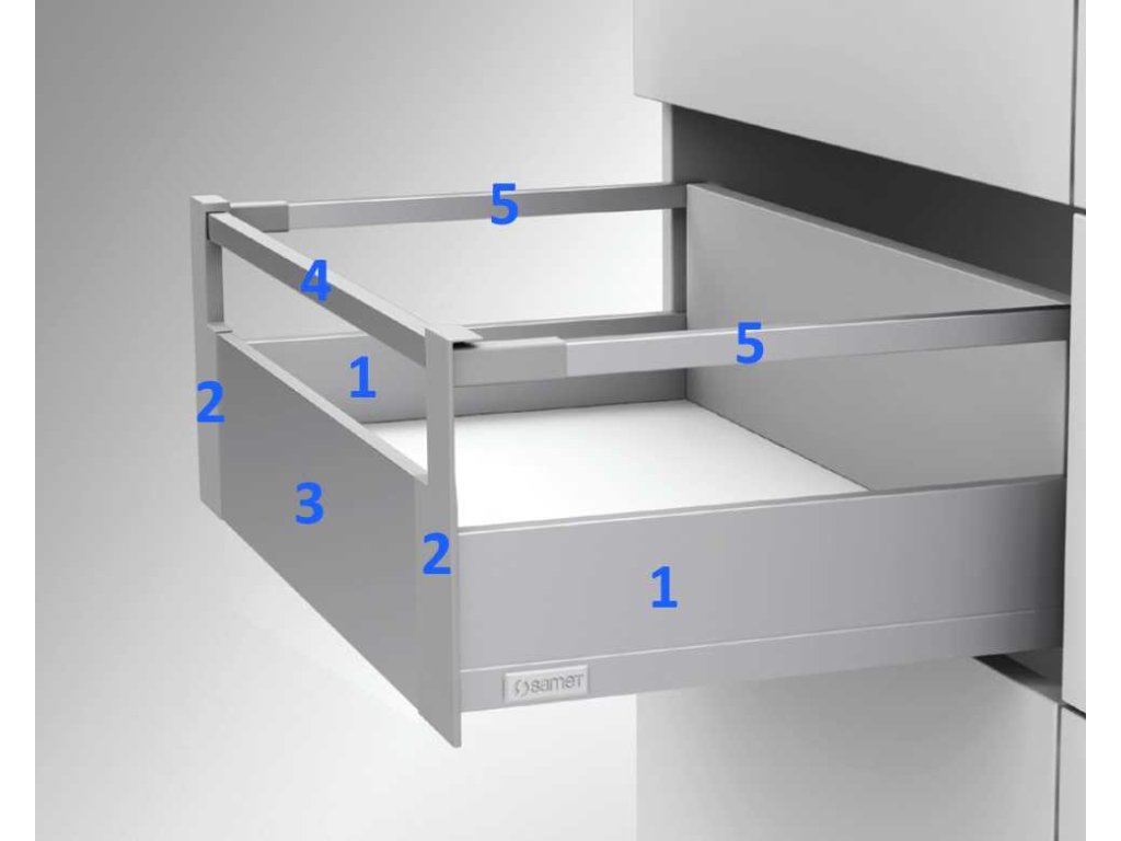 Systémy zásuvek: Samet poskytuje boční i spodní montážní výsuvy, stejně jako kompletní zásuvkové boxy, jako jsou FlowBox, AlphaBox a SmartBox, které kombinují funkčnost s estetickým designem.
