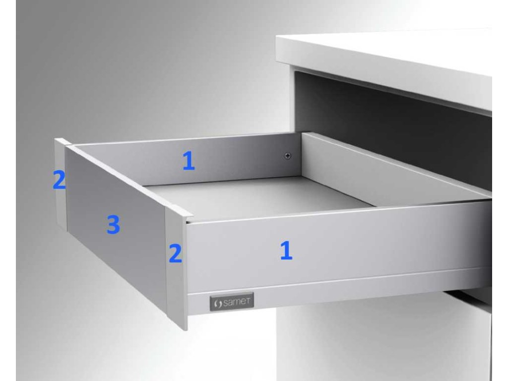 Systémy zásuvek: Samet poskytuje boční i spodní montážní výsuvy, stejně jako kompletní zásuvkové boxy, jako jsou FlowBox, AlphaBox a SmartBox, které kombinují funkčnost s estetickým designem.