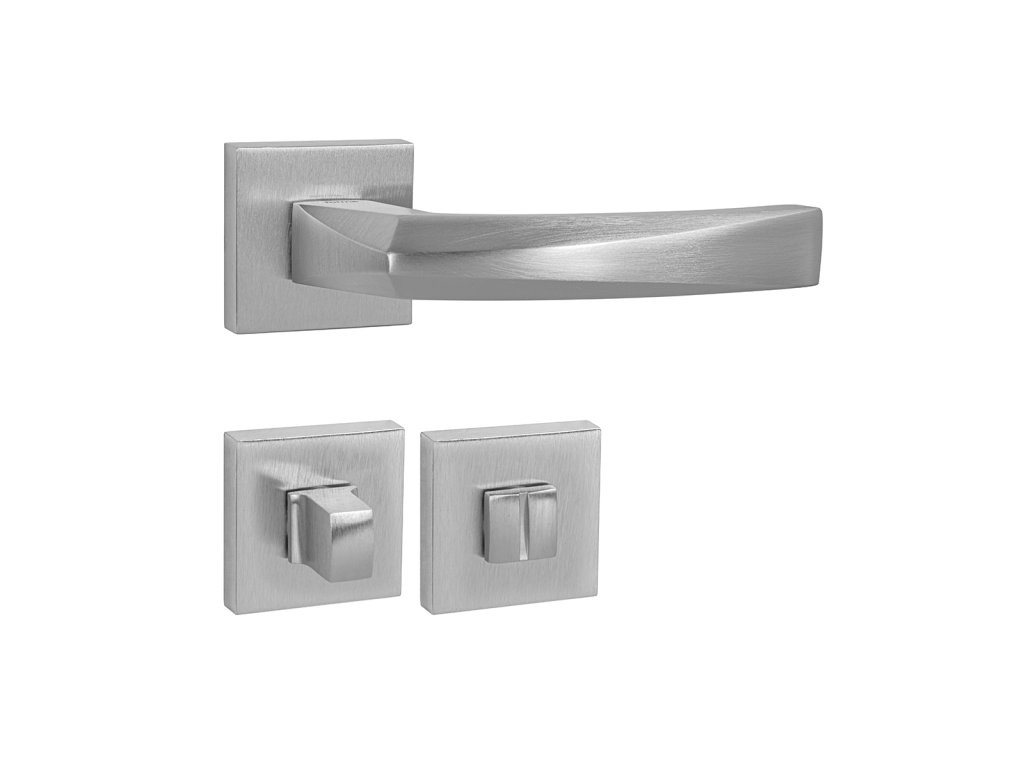 Rozetová klika na interiérové dveře s hranatou rozetou je vyrobená z materiálů vysoké kvality – zamak a je povrchově upravená.