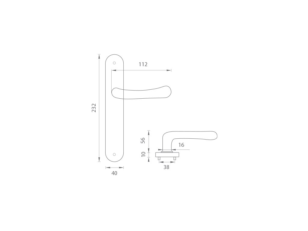 Štítová klika na interiérové dveře s oválným štítem je vyrobena z materiálů vysoké kvality - mosaz / zamak a je povrchově upravena. Oválný štít má rozměry 40 mm x 232 mm.