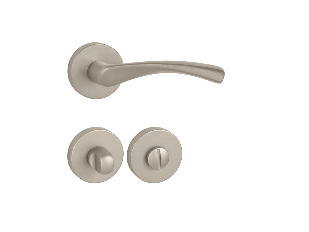 Rozetová klika na interiérové dveře s kulatou rozetou je vyrobena z materiálů vysoké kvality - mosaz / zamak a je povrchově upravena. Rozeta má průměr 50 mm a tloušťku 10 mm.