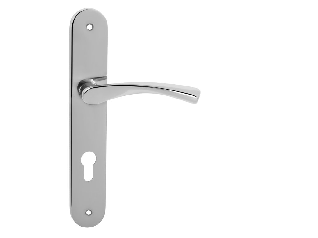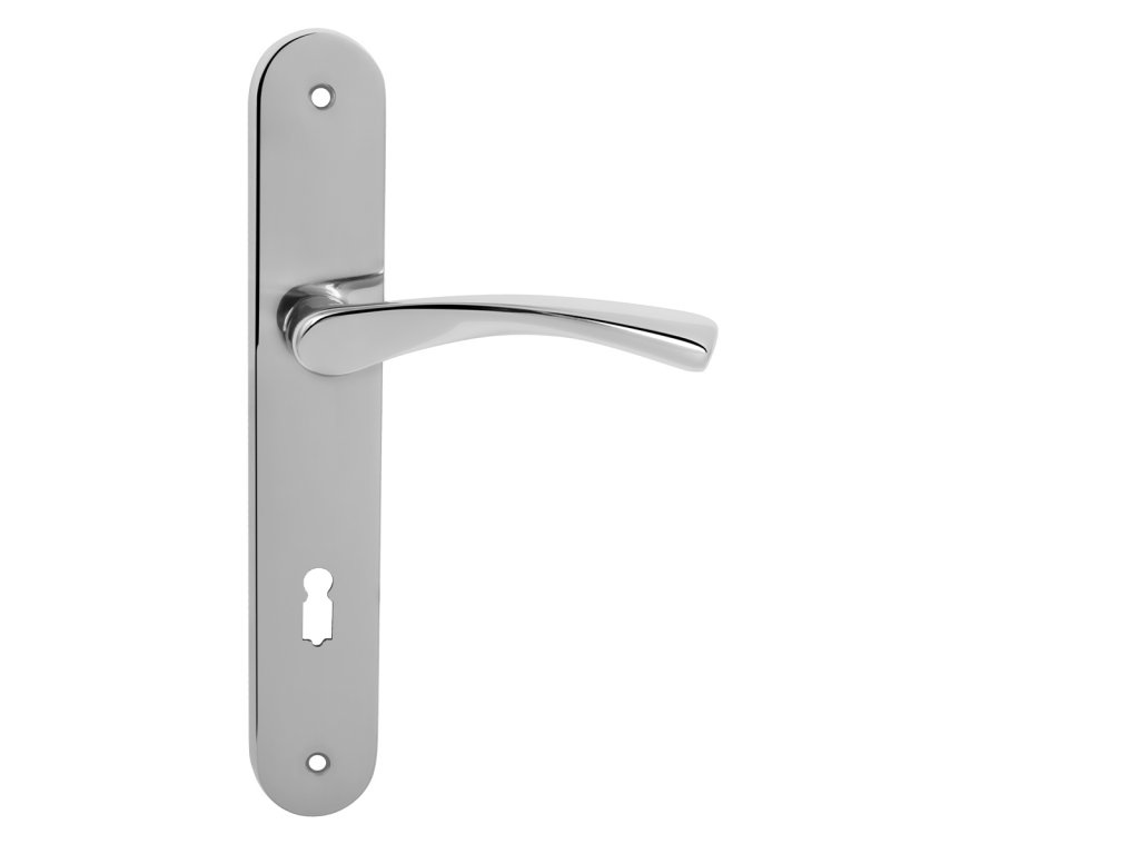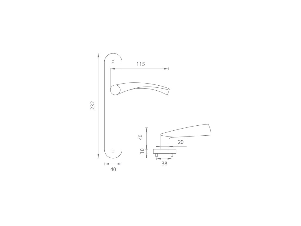 Štítová klika na interiérové dveře s oválným štítem je vyrobena z materiálů vysoké kvality - mosaz / zamak a je povrchově upravena. Oválný štít má rozměry 40 mm x 232 mm.