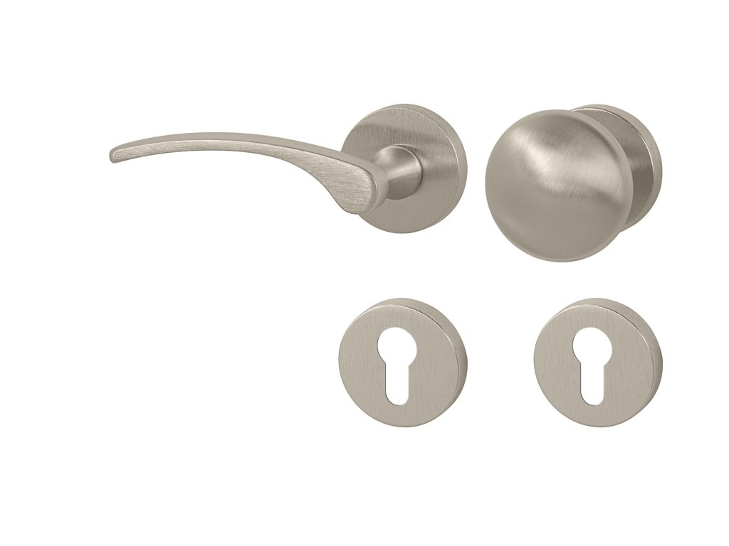 Rozetová klika na interiérové dveře s kulatou rozetou je vyrobena z materiálů vysoké kvality - zamak a je povrchově upravena. Rozeta má průměr 50 mm a tloušťku 10 mm.