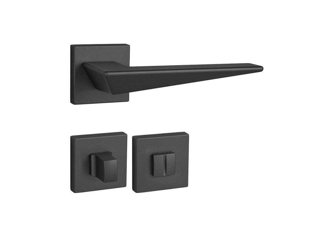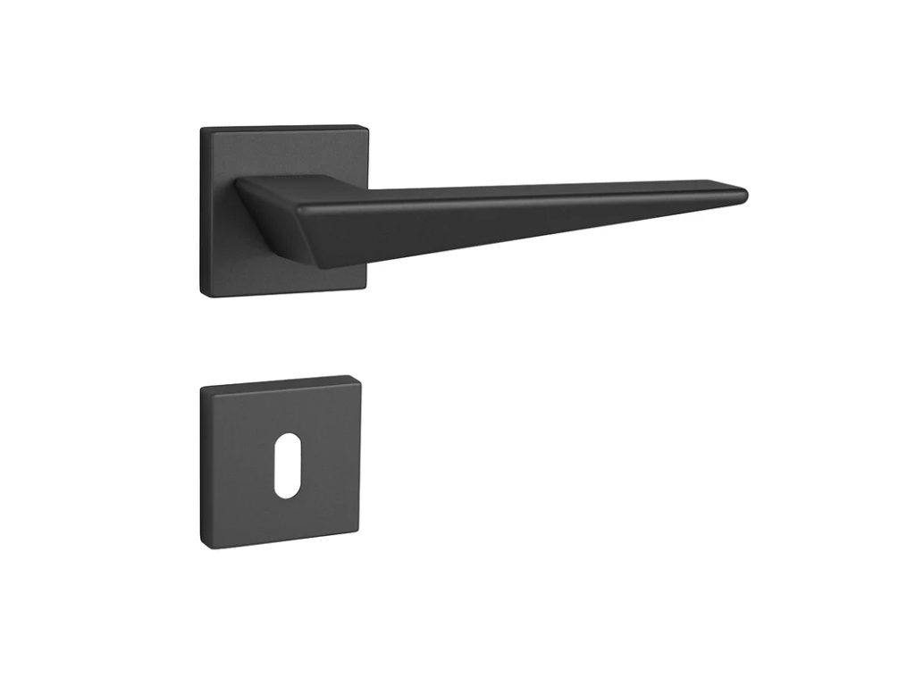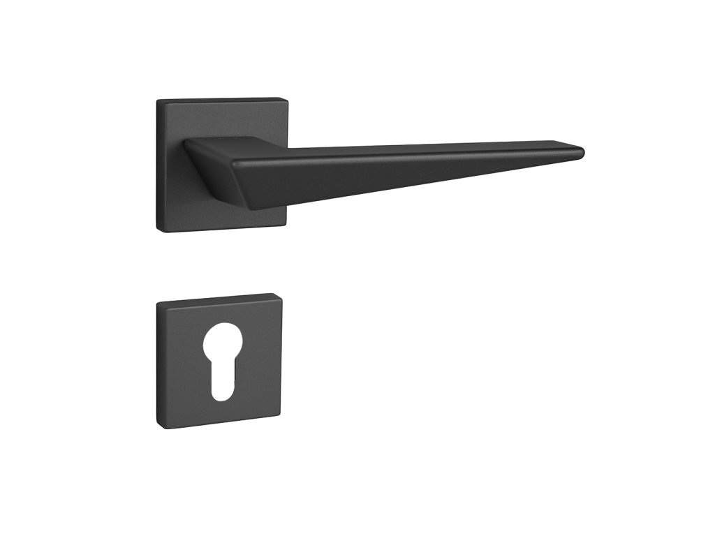 Rozetová klika na interiérové dveře s hranatou rozetou je vyrobena z materiálů vysoké kvality - zamak a je povrchově upravena.