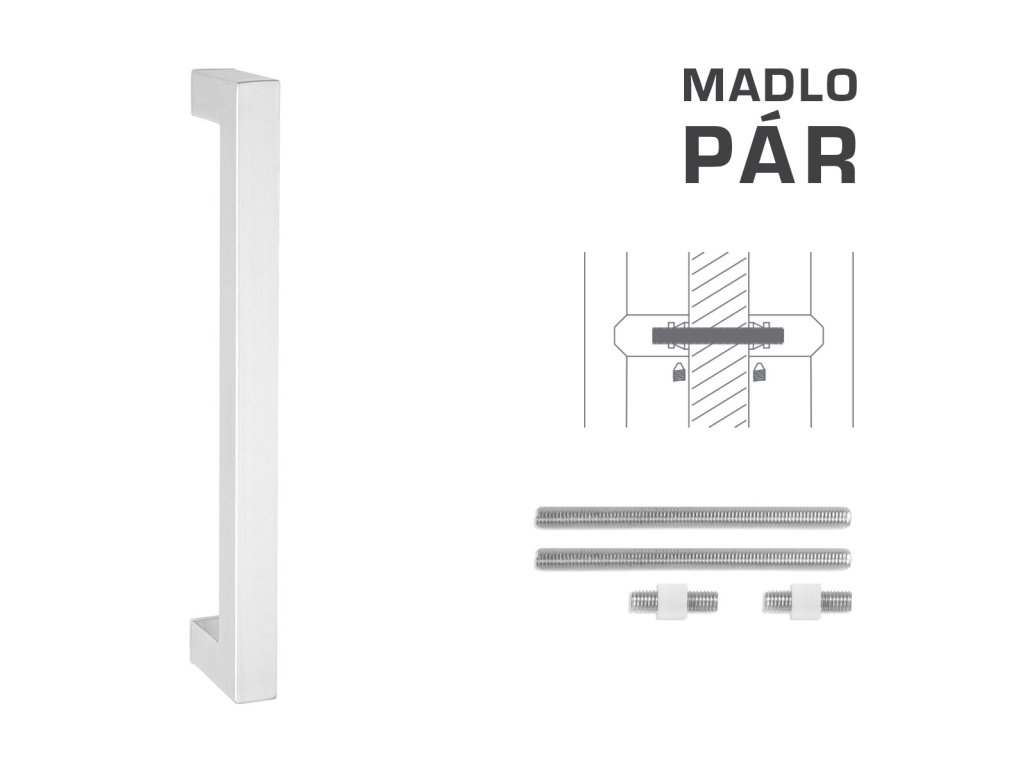 Madlo na dveře je vyrobeno z vysoce kvalitní nerezavějící oceli, známé jako nerez a je povrchově upraveno. Profil madla je 25 x 25 mm. Sada UNIVERZÁL (UN) obsahuje spojovací materiál pro oboustrannou montáž dvou madel do dřeva, PVC, AL, skla.