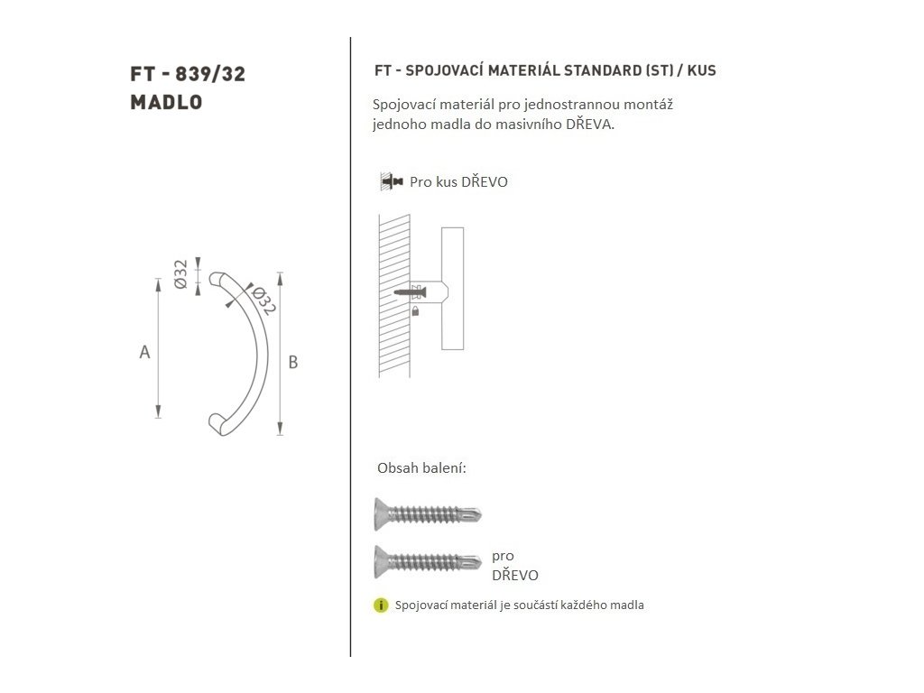 Madlo na dveře je vyrobeno z vysoce kvalitní nerezavějící oceli, známé jako nerez a je povrchově upraveno. Profil madla je 32 mm. Součástí madla jsou šrouby 6 x 45 mm.