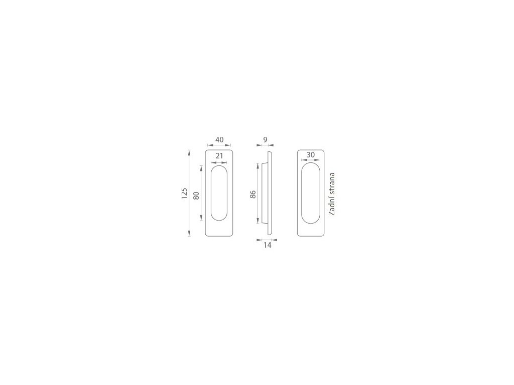 Hranatá mušle bez otvoru je vyrobena z materiálů vysoké kvality - zamak a je povrchově upravena. Mušle má výšku 125 mm, šířku 40 mm, zádlab 9 mm a celkovou tloušťku 14 mm.
