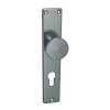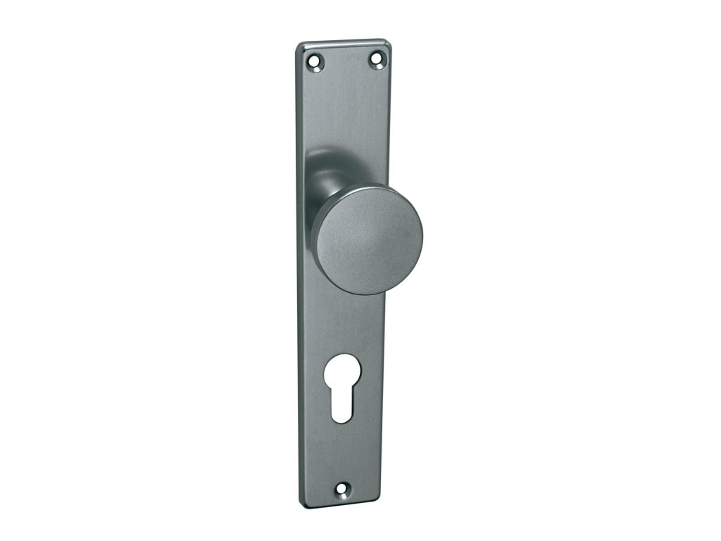 Dveřní pevná přímá koule na hranatém štítě je vyrobena z hliníku a je povrchově upravena. Koule má průměr 46 mm a hranatý štít má rozměry 28 mm x 215 mm a tloušťku 7 mm. Používaný u modelu LUCIA.