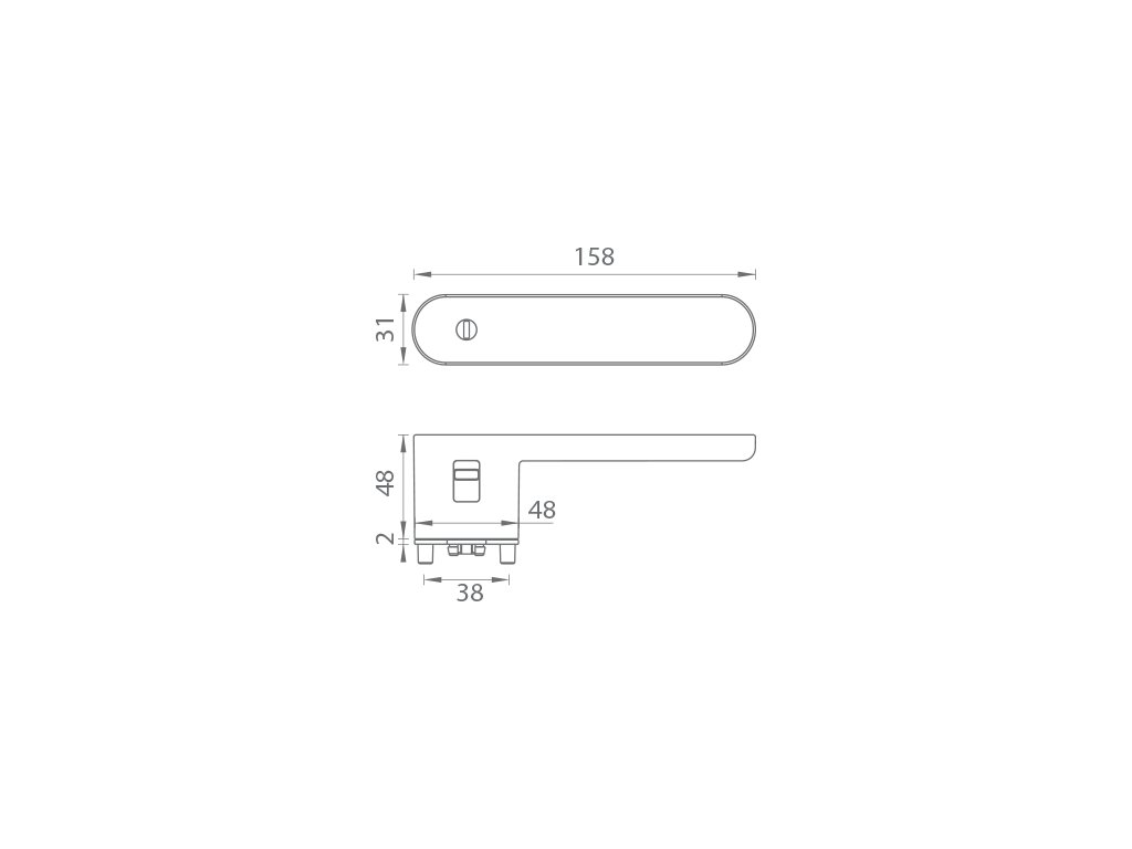 Rozetová klika na interiérové dveře s obdélníkovou rozetou je vyrobena z materiálů vysoké kvality - zamak a je povrchově upravena. Rozeta pod kliku má rozměry 48 mm x 31 mm a tloušťku 2 mm. Samotná rozeta je součástí designu kliky.