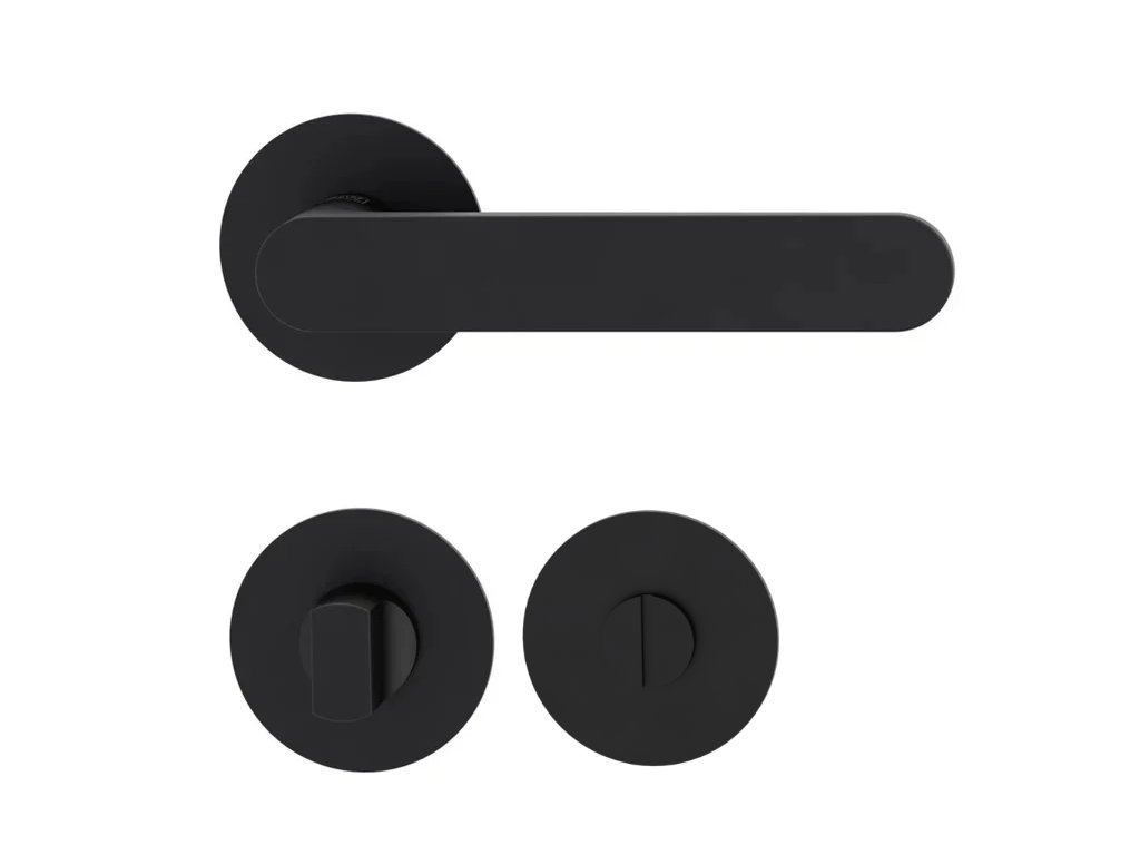 Mechanismus kliky obsahuje vratnou pružinu. Výstupky na rozetě zabraňují jejímu protáčení a šrouby na prošroubování přes celou šířku dveří zaručí pevnější a stabilnější uchycení kování.