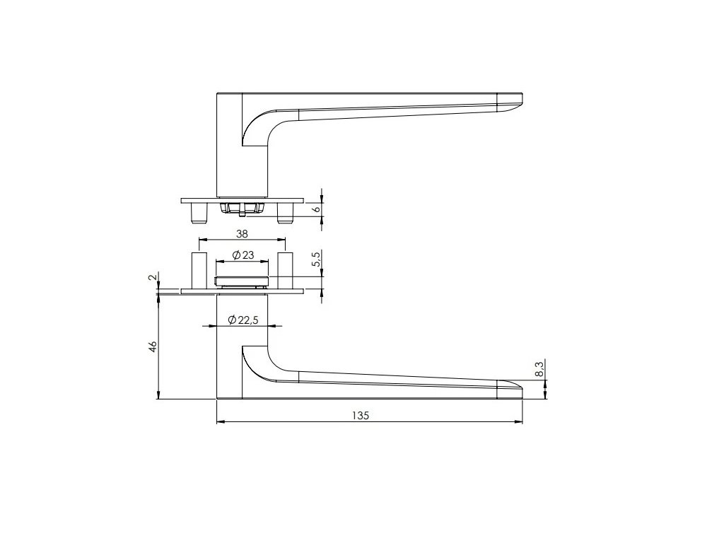 Standardně je kování dodávané se šrouby a čtyřhranem (8 x 8 mm) pro tloušťku dveří 38 - 45 mm.