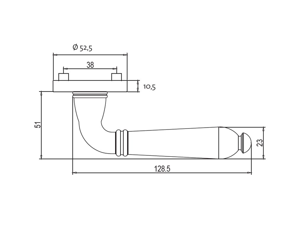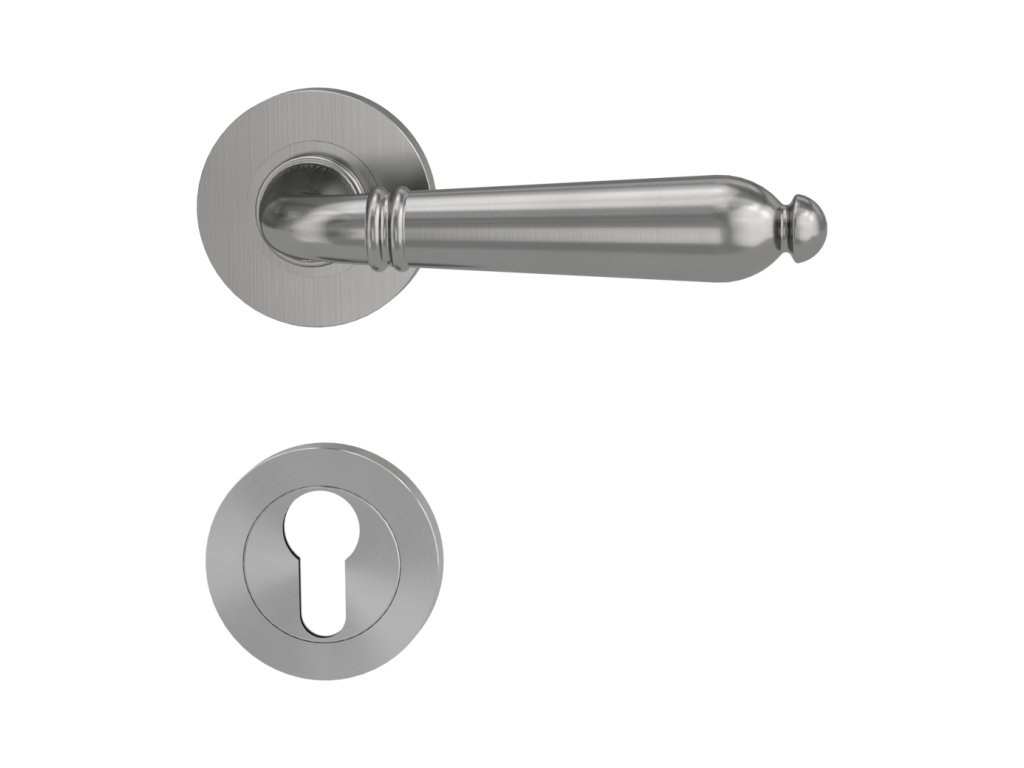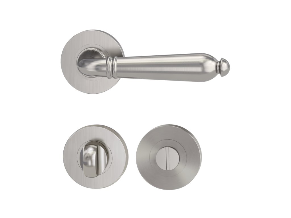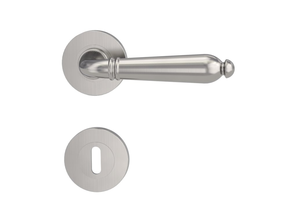 Rozetová klika na dveře CAROLA s kulatou rozetou je vyrobená z kvalitní nerezavějící oceli. Kulatá rozeta má průměr 52,5 mm a tloušťku 10,5 mm.