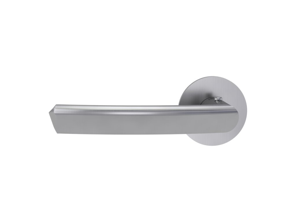 Rozetová klika na interiérové dveře s kulatou rozetou je vyrobena z vysoce kvalitní nerezavějící oceli, známé jako nerez a je povrchově upravena. Rozeta má průměr 53 mm a tloušťku 2 mm.