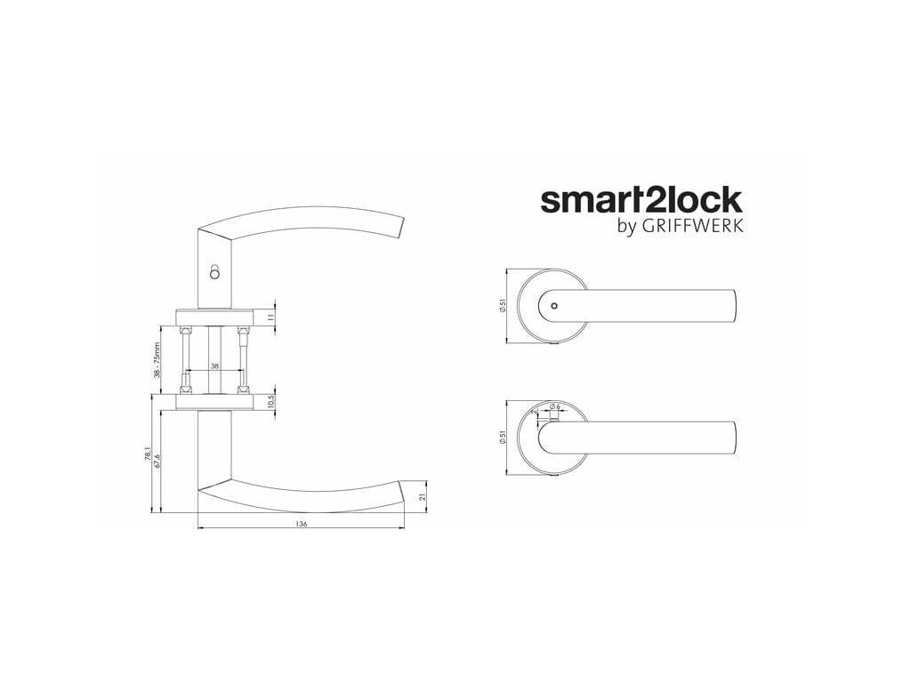 Klika ze série Smart2lock má integrovanou inteligentní technologii uzamykání přímo v klice, takže nejsou potřeba rozety s mechanickým klíčem.