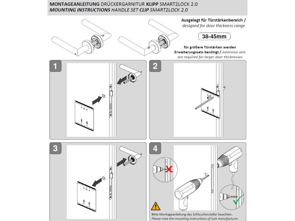 Standardně je kování dodáváno se šrouby a čtyřhranem (8x8 mm) pro tloušťku dveří od 38 do 45 mm.