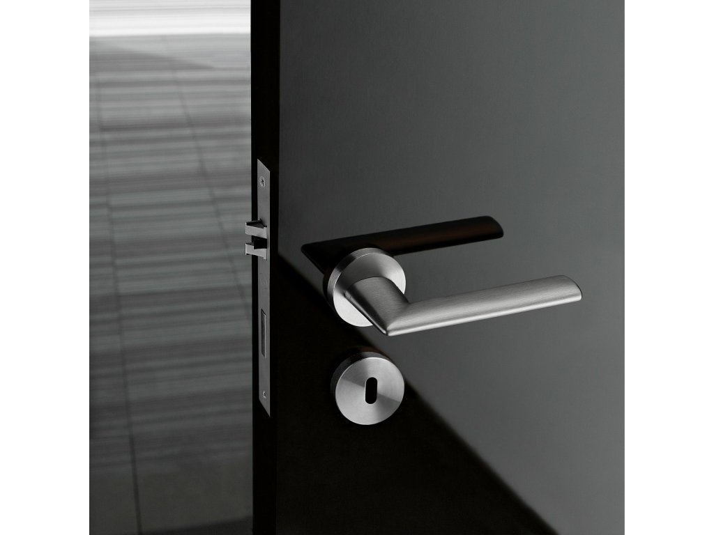 Rozetová klika na interiérové dveře s kulatou rozetou je vyrobená z vysoce kvalitní nerezavějící oceli, známé jako nerez a je povrchově upravená. Rozeta má průměr 50 mm a tloušťku 8 mm.