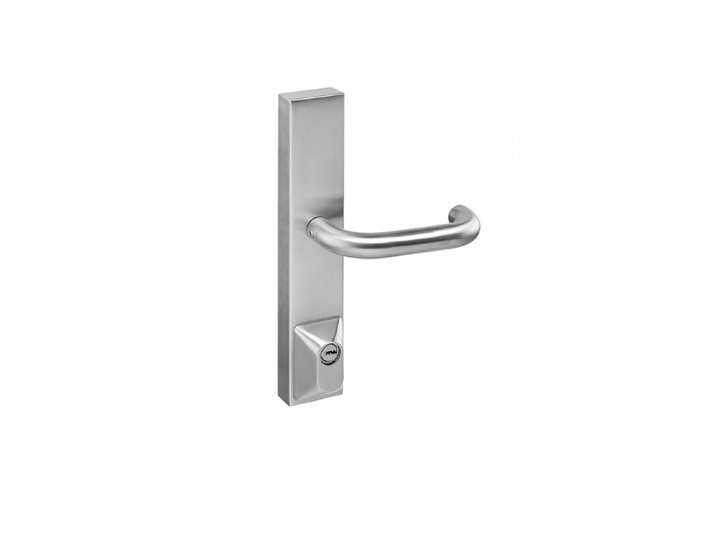Štítová paniková klika IN.20.950 je vyrobená z kvalitního materiálu nerezavějící oceli s povrchovou úpravou a je vhodná pro panikové kování IN.20.951. Klika má integrovanou cylindrickou půlvložku, nepřechází přes zadlabací zámek.